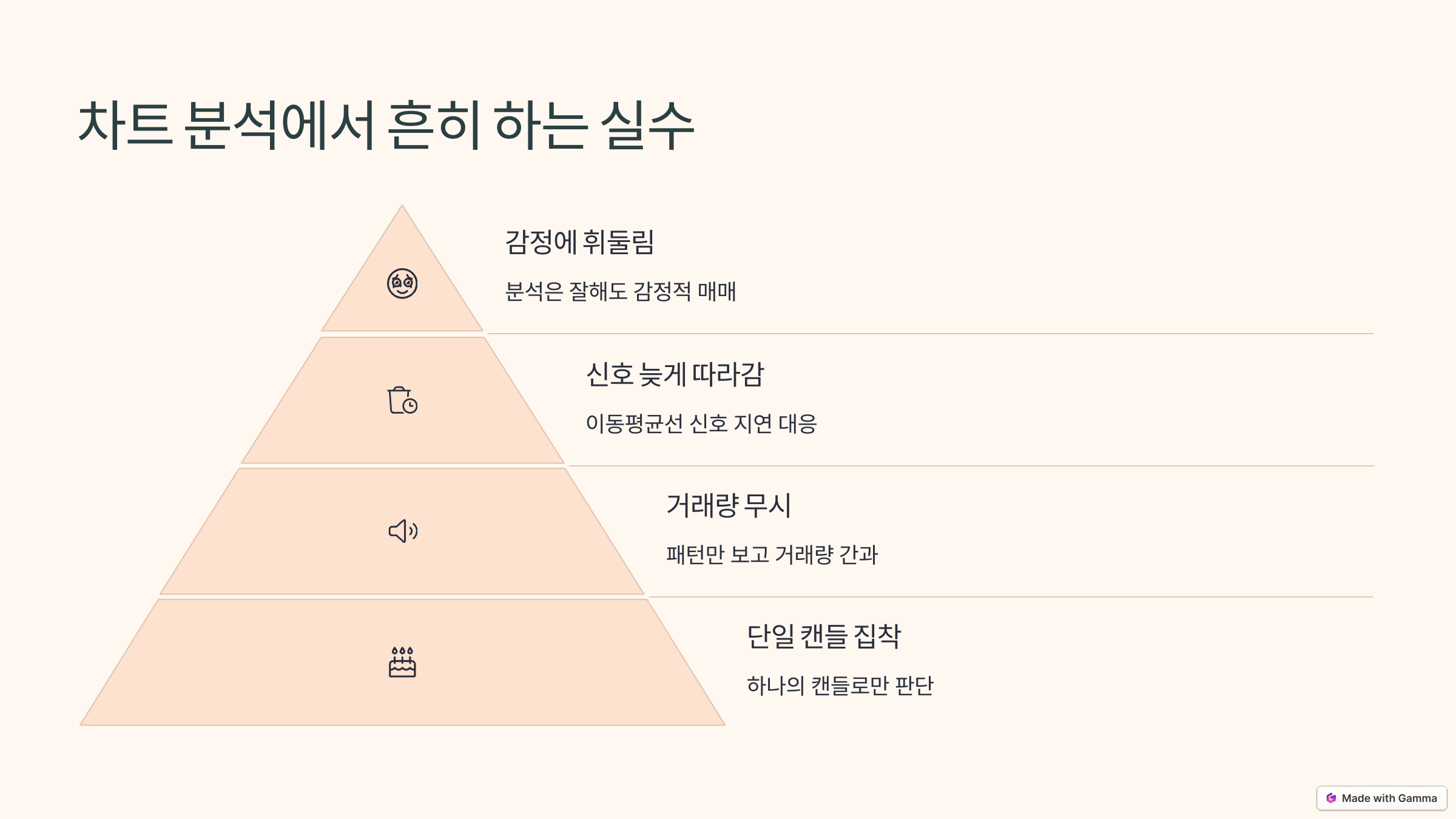 | 이동평균선 | 추세 판단, 지지/저항 확인 | 기간 설정에 따라 완전히 다름 |