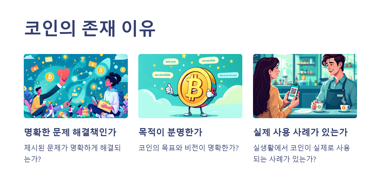 | 코인 | 핵심 가치 | 유의사항 |