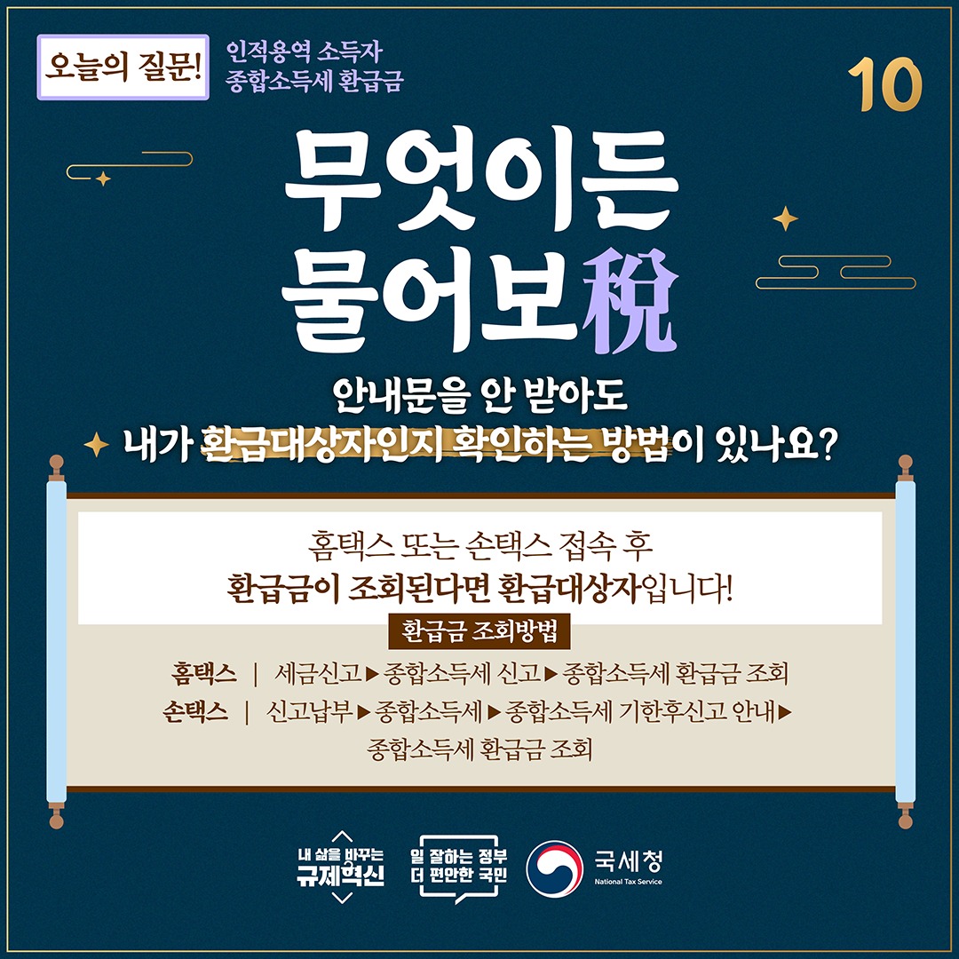 환급 대상 여부는 국세청 홈택스에서 간단히 확인할 수 있습니다. 아래 단계별로 안내드립니다.