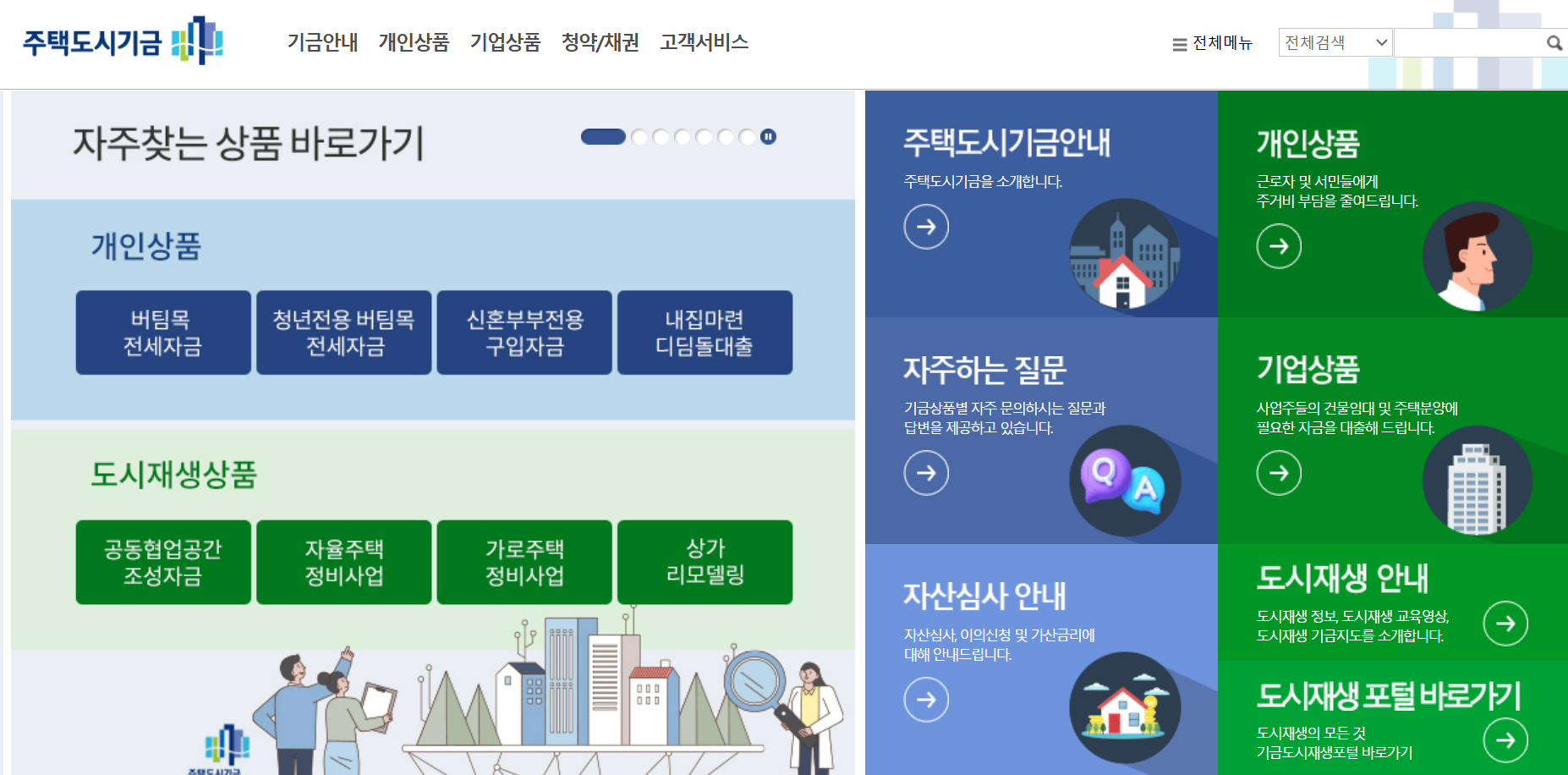 주택도시기금 소개, 주택구입(내집마련디딤돌 등), 전세자금, 월세대출, 국민주택채권, 주택청약, 신혼부부대출