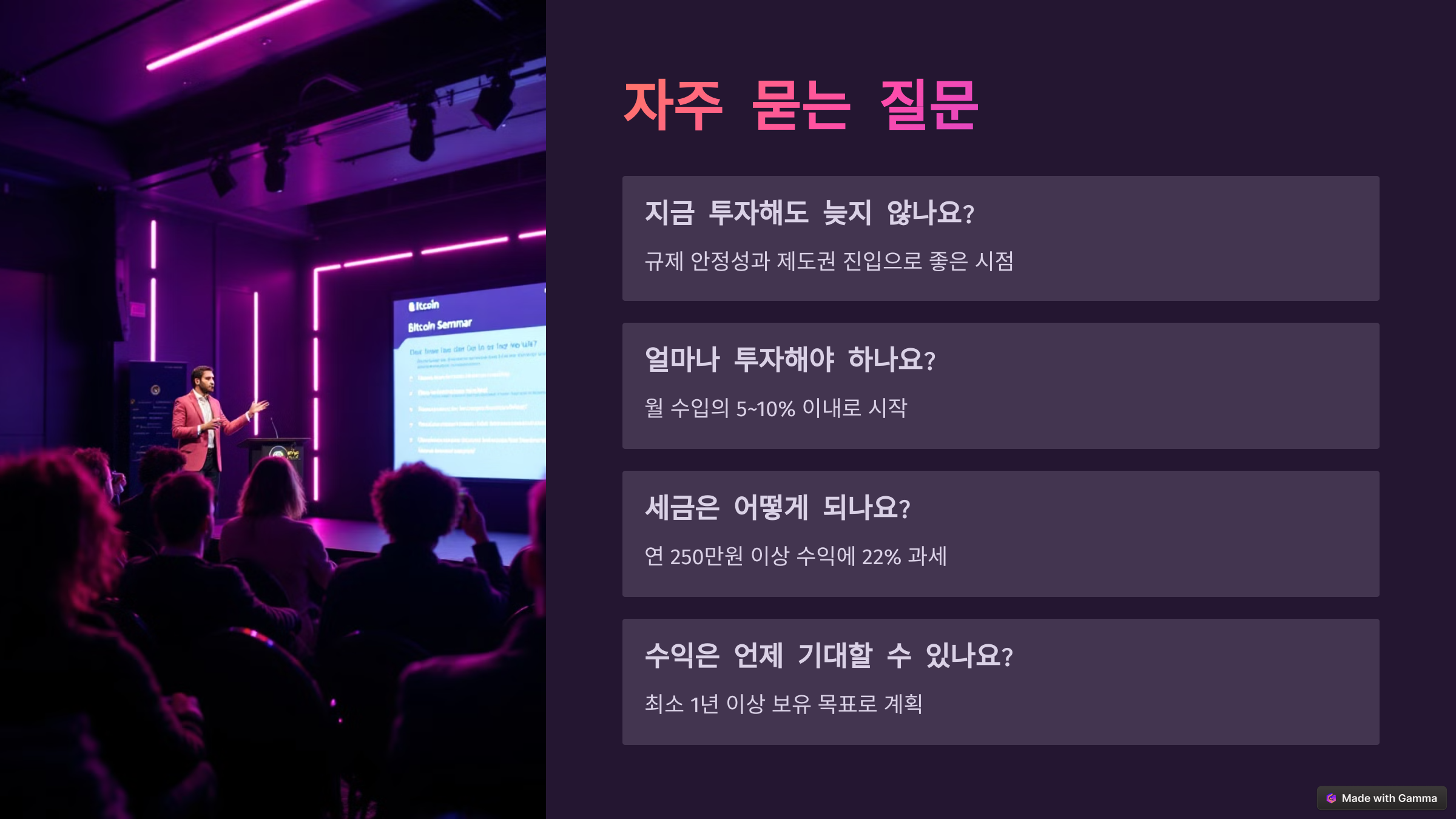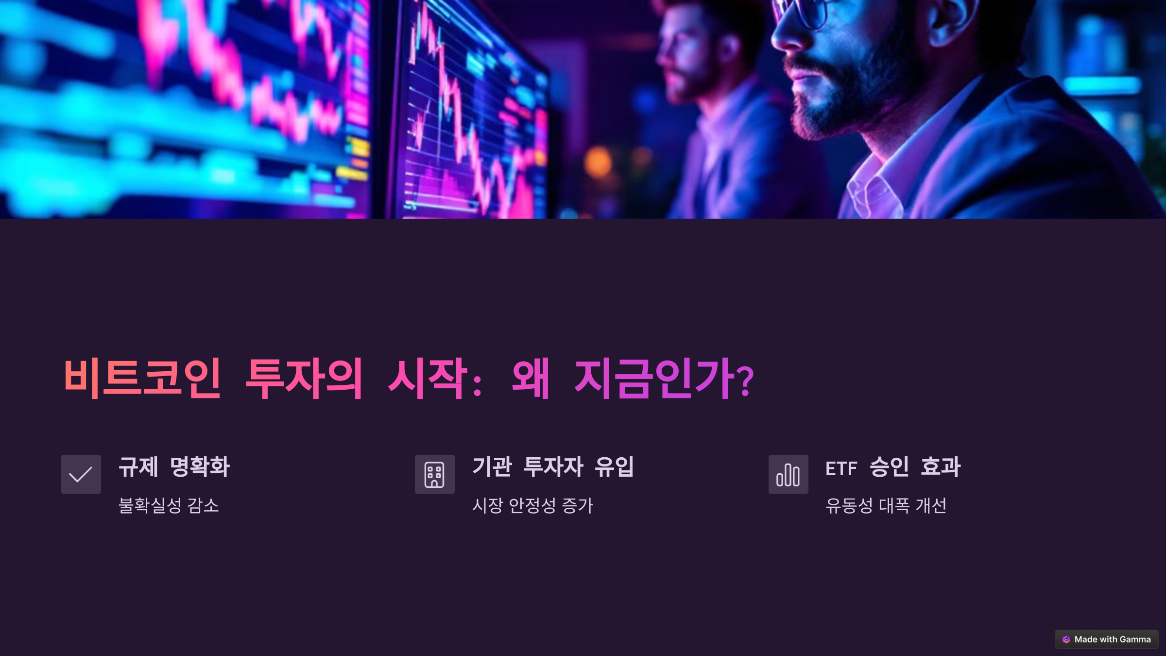 2025년은 규제 안정성과 제도권 진입 덕분에 장기투자자에게 매우 좋은 시점입니다. 늦지 않았어요.