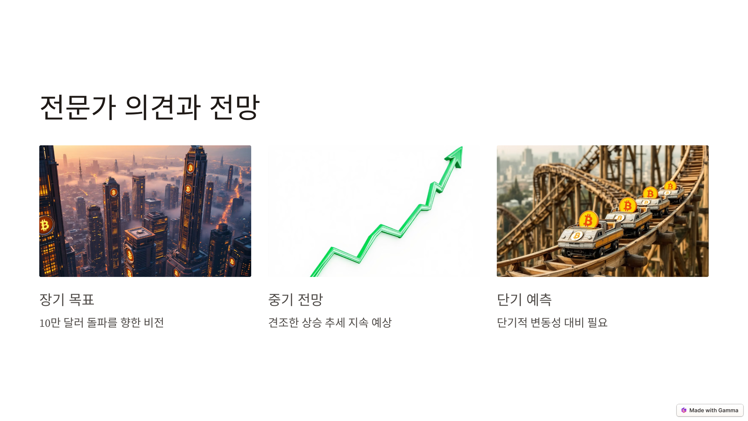 전문가들의 의견은 다양하지만, 대체로 비트코인의 장기적인 상승 가능성에 무게를 두고 있습니다. 예를 들어, 일부 분석가들은 비트코인이 2025년까지 10만 달러를 돌파할 것으로 전망하고 있습니다. :contentReference[oaicite:2]{index=2}