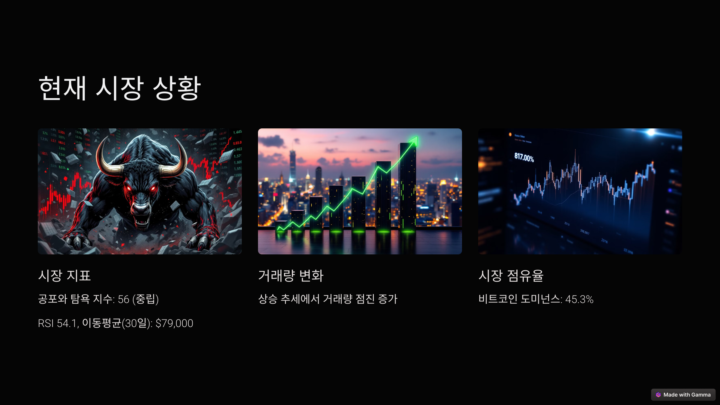 현재 비트코인은 주요 이동평균선 위에서 거래되고 있으며, 기술적으로는 다음 레벨의 돌파 여부가 관건입니다.