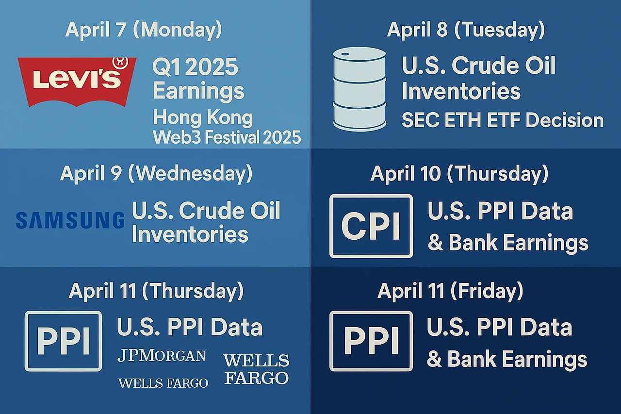 2025년 4월 7일~13일 주간 경제 캘린더: 주식과 암호화폐에 영향을 줄 이벤트 및 과거 데이터 분석