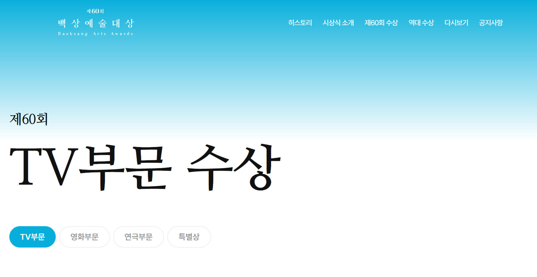 - TV부문: 작품상, 남녀 최우수연기상, 조연상, 인기상 등