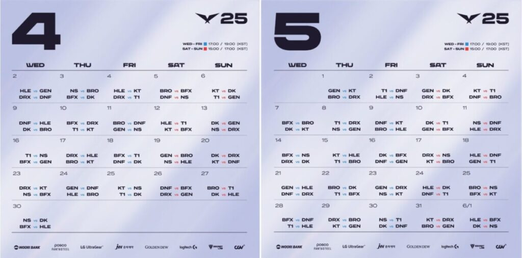 - LCK컵 (1~2월): 프리시즌 토너먼트, First Stand 2025 진출 팀 선발.